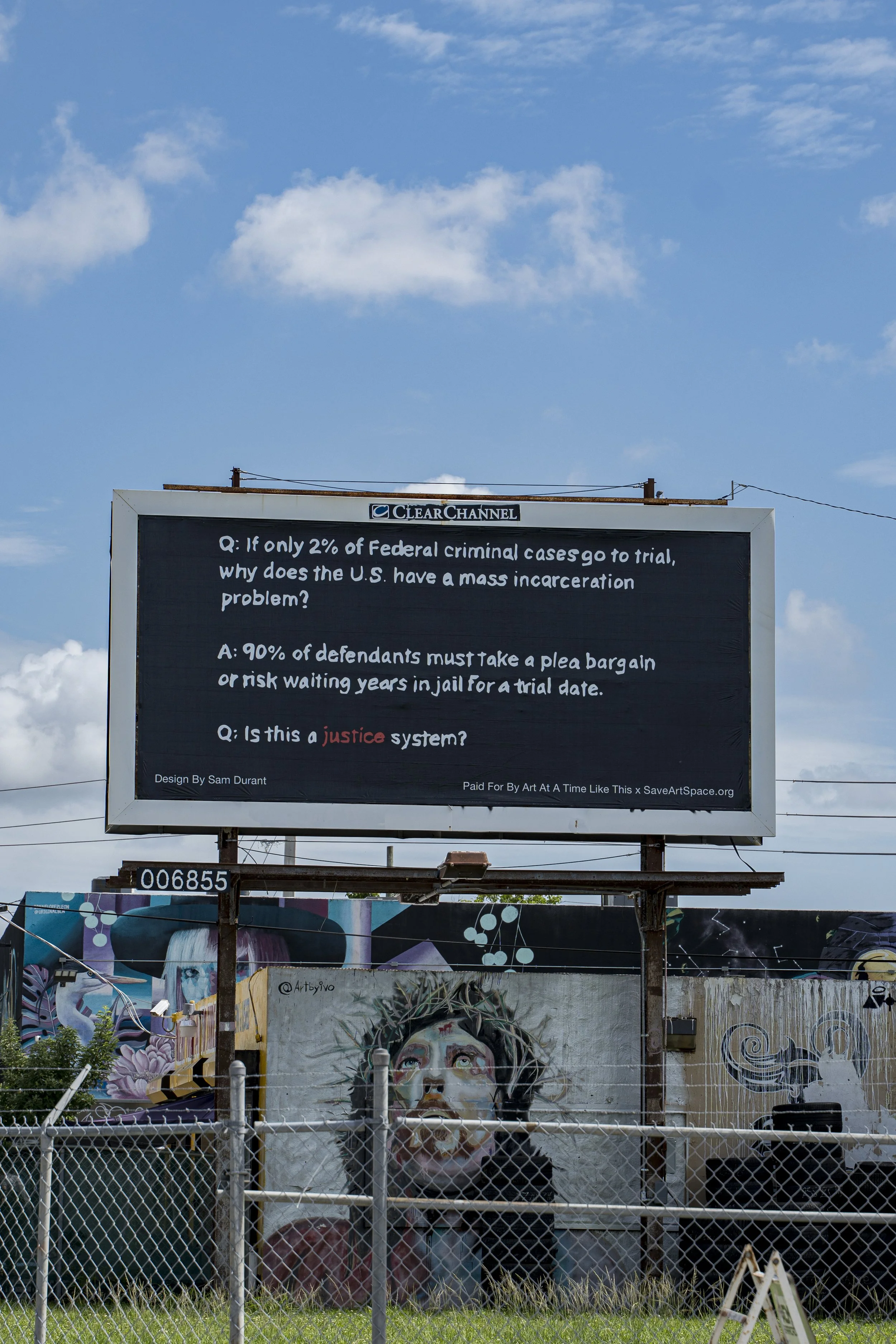 “End Mass Incarceration!” has become a widely repeated political slogan, yet change and reform has stalled time and again. This exhibition does not just repeat the well-known fact that the U.S. is the leading incarcerator in the world. It delivers an indictment of the judicial system, a system that prevents many from receiving a fair trial. By placing comments and images in the public sphere–in close proximity to the offices of judges, prosecutors and administrators –this project can instigate a conversation with the chief activators engaged in practices contributing to mass incarceration.