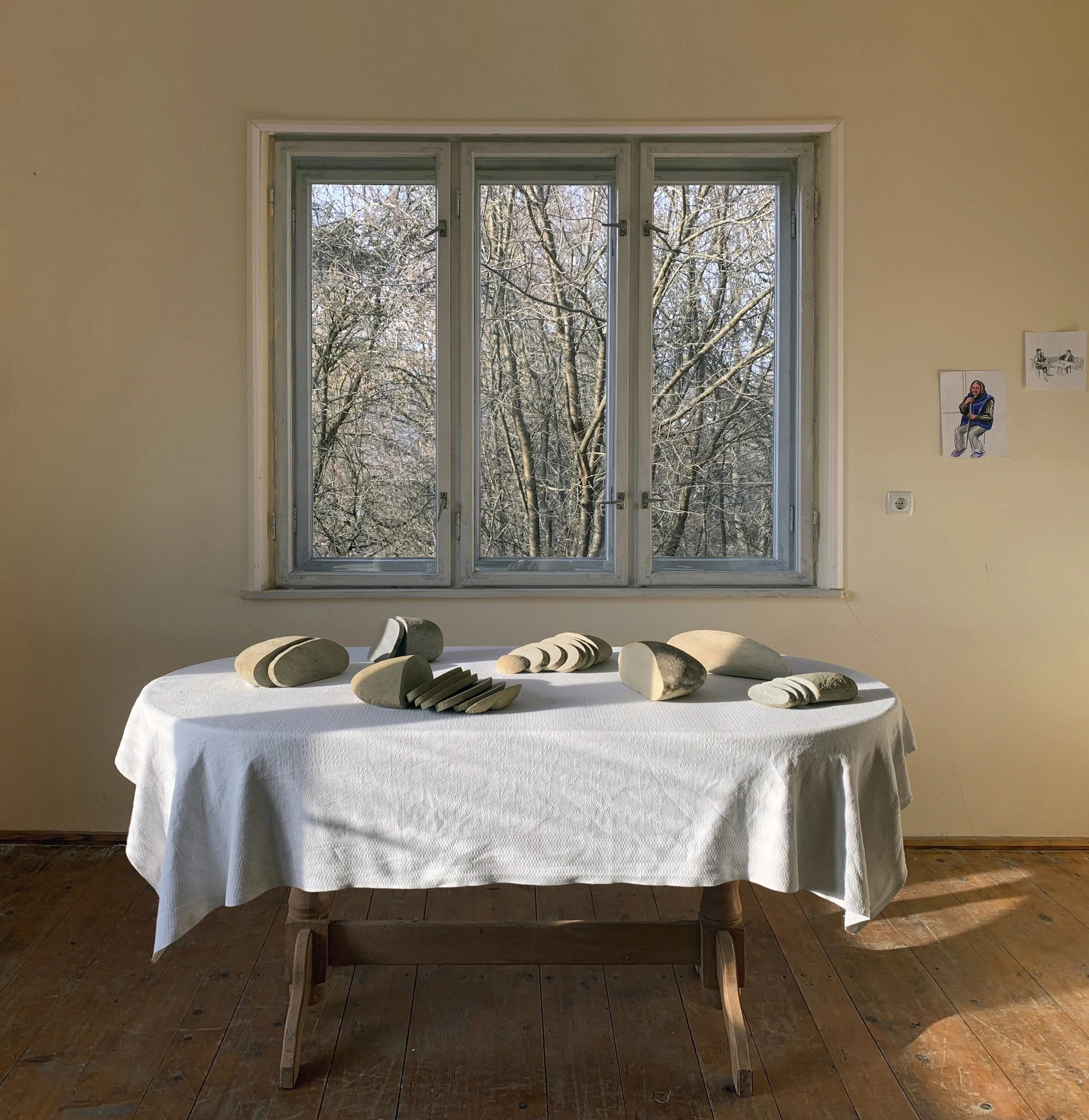 Curator’s note: Kadyrova continues to make her Palianytsia sculptures from river stones. They are made in and from Ukraine (its rivers and stones) and embody Ukrainian resolve: stone bread that could break one’s teeth.